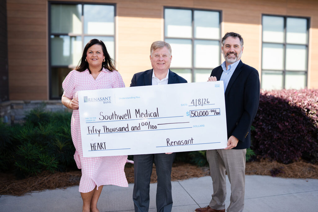 “Renasant Bank’s charitable giving helps Southwell in its mission to provide exceptional care for the community,” said Christopher Dorman, President/CEO. “We appreciate their generous contributions.”